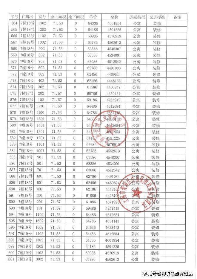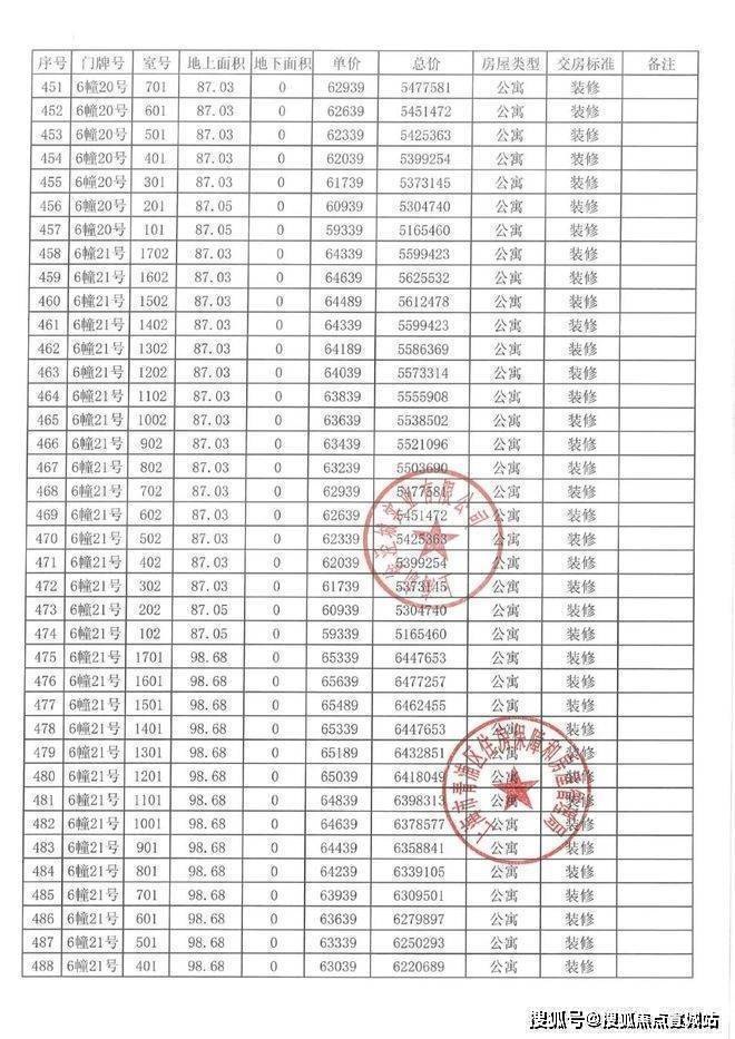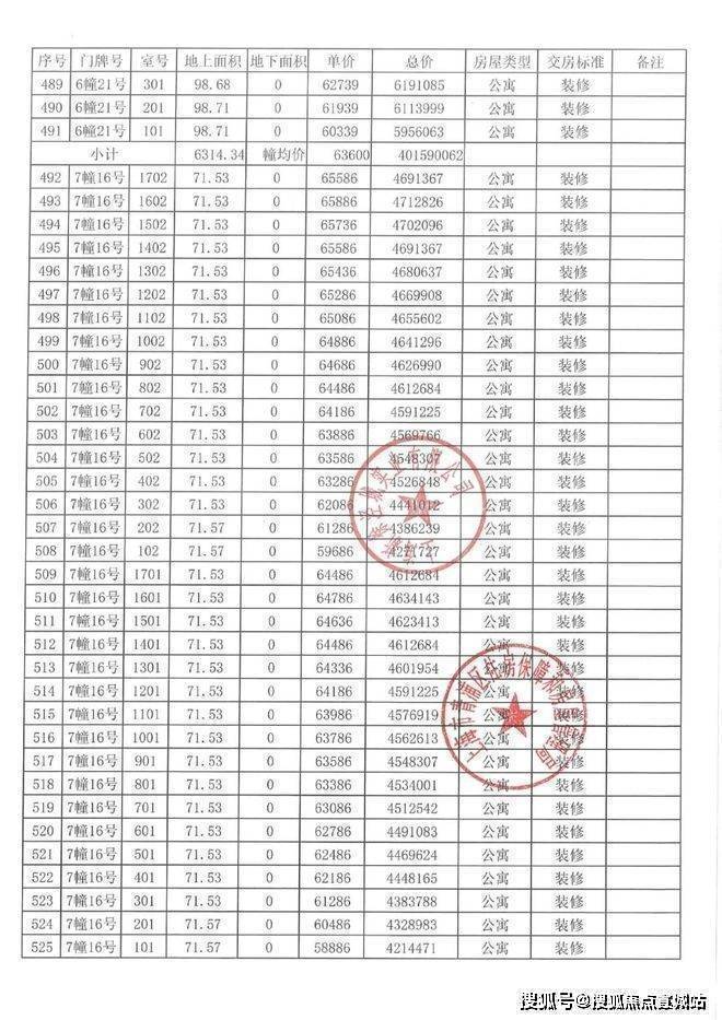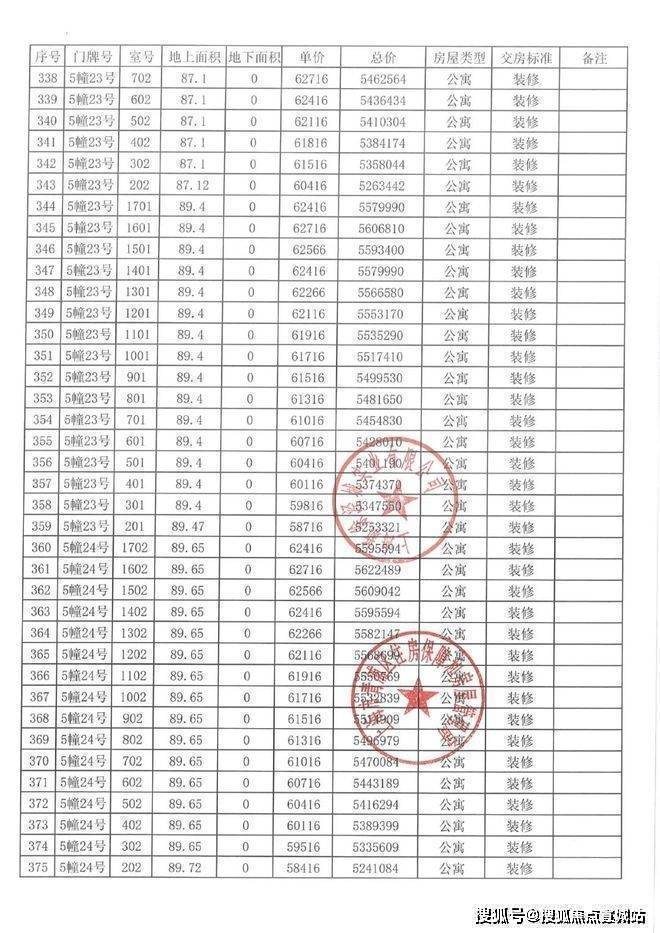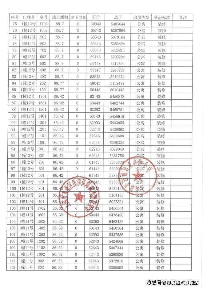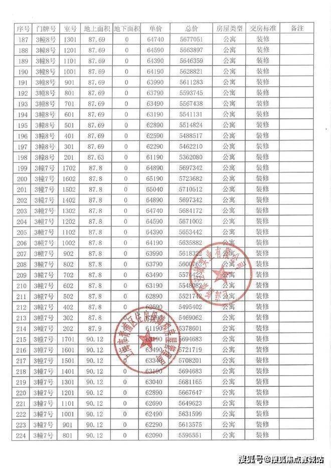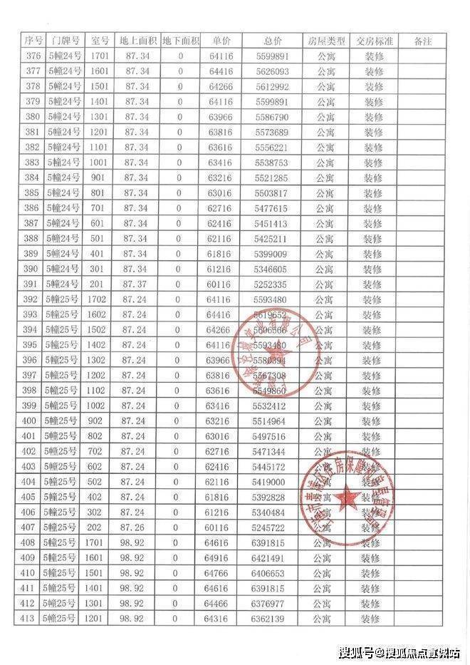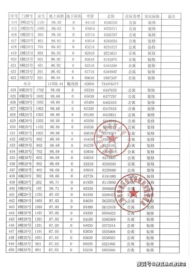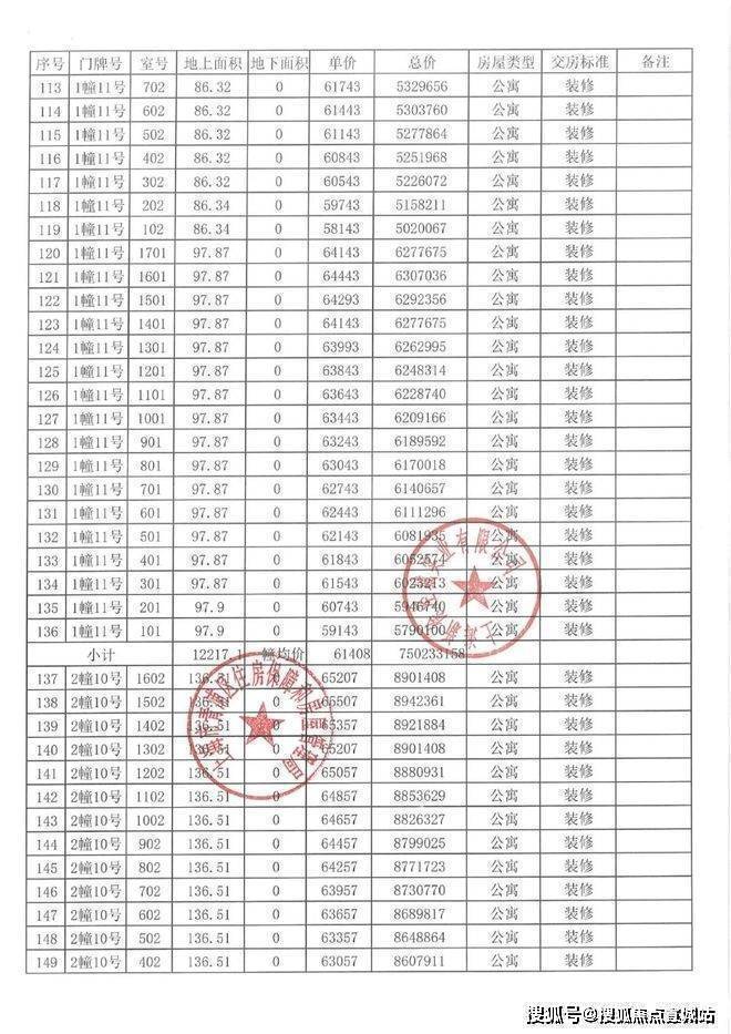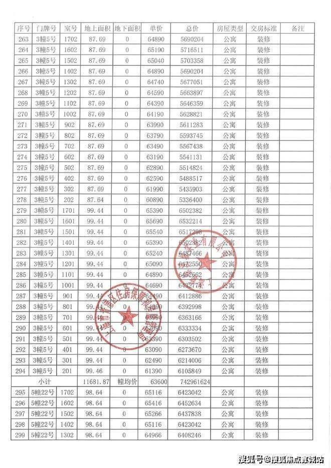 一房一价表