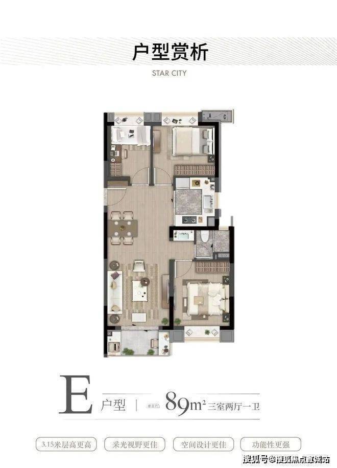 建面约89㎡三房