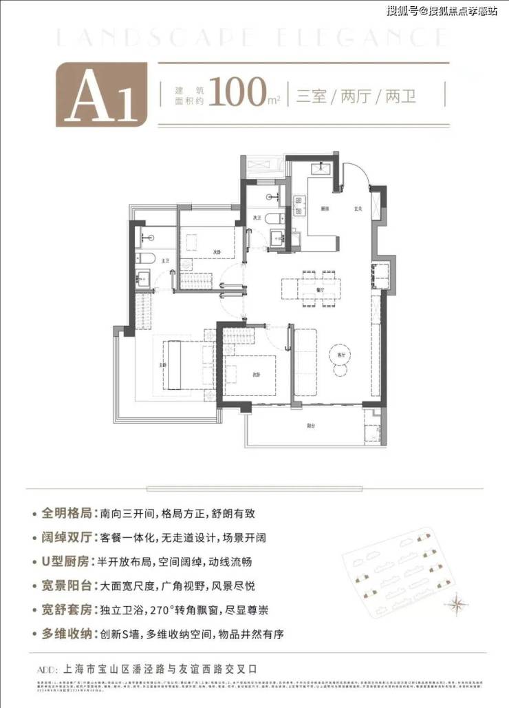 建面约高层:100平(三房两厅两卫)