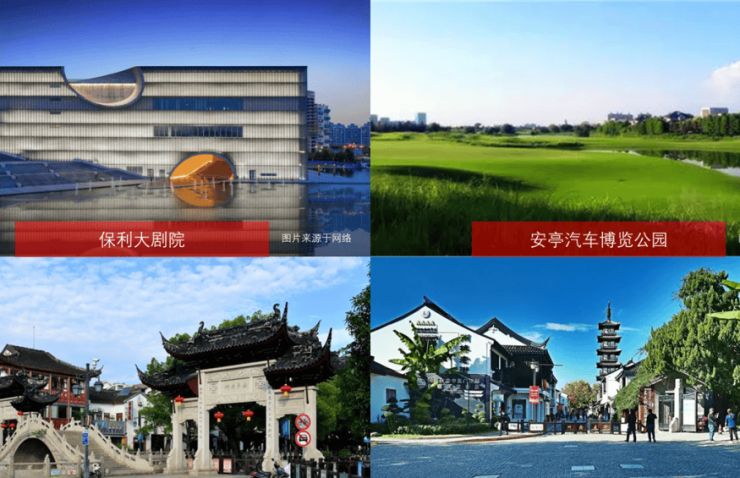5 处休闲配套——市民广场、保利大剧院、安亭老街、颖奕安亭高尔夫球场、州桥老街