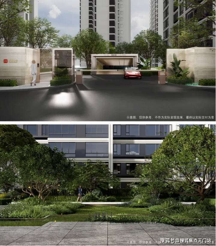 社区景观上,营造 “一轴一心三主题” 全龄共享的园林空间,让业主沉浸式体验更具松弛感的邻里生活。