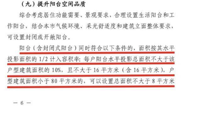 举个例子:新规后120㎡户型阳台最大只能达到12㎡,160㎡户型阳台最大只能达到16㎡,再往上180㎡、200㎡以上的大户型,阳台最大限度依旧是16㎡。