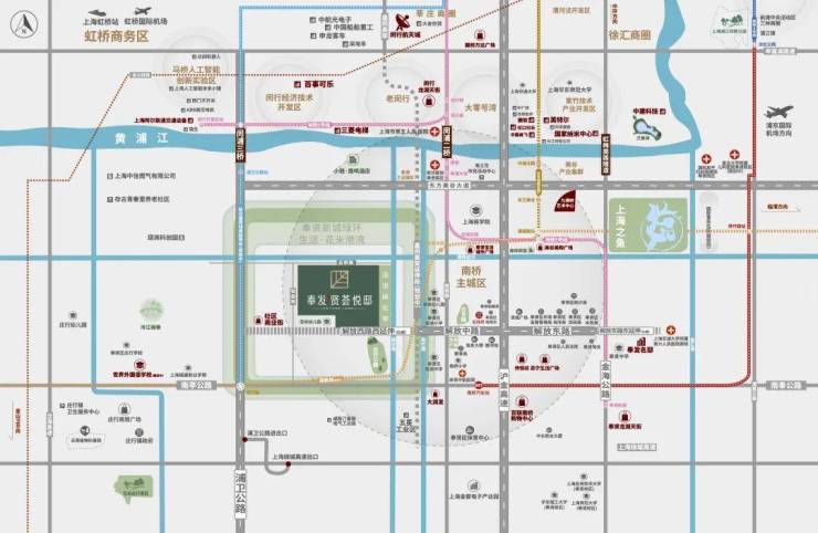 1隧2轨3桥,承接闵行主城、链接奉贤新城,有效辐射包括虹桥、闵行、嘉定新城在内的产业集群,使得板块跃升为虹桥商务区南部承载区