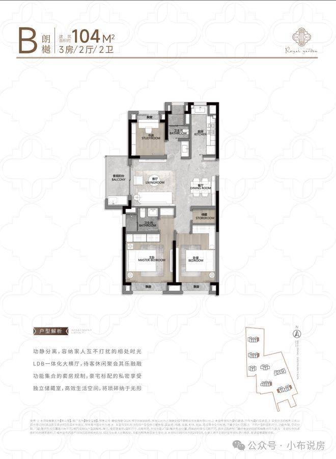 动静分离+客餐厅一体化设计,功能区和休息区互不干扰,客餐厅、厨房等公共活动区集中在一侧,卧室等休息区全部一侧,保证了私密性!