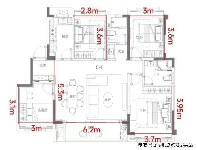 它不仅做到了四房设计,更是做到了6.2米的宽厅,✅✅佳运名邸售楼处电话:400-8855-420✅✅尺度媲美大平层,北向房间还能够放置1.5米的床。