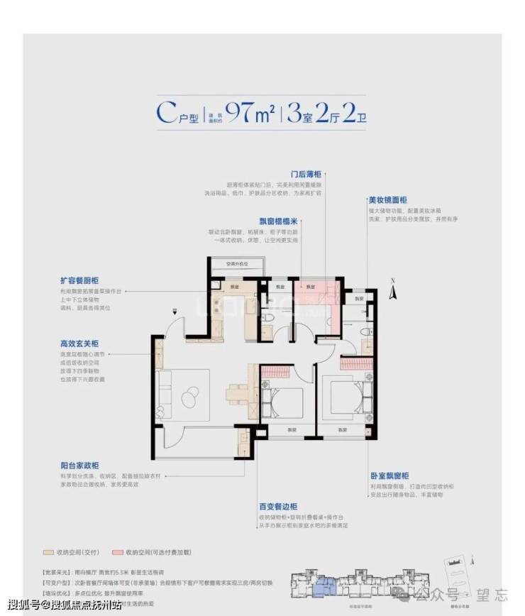 【建面97㎡3居】359-439万,3室2厅2卫, 南朝向,楼栋分布于1幢
