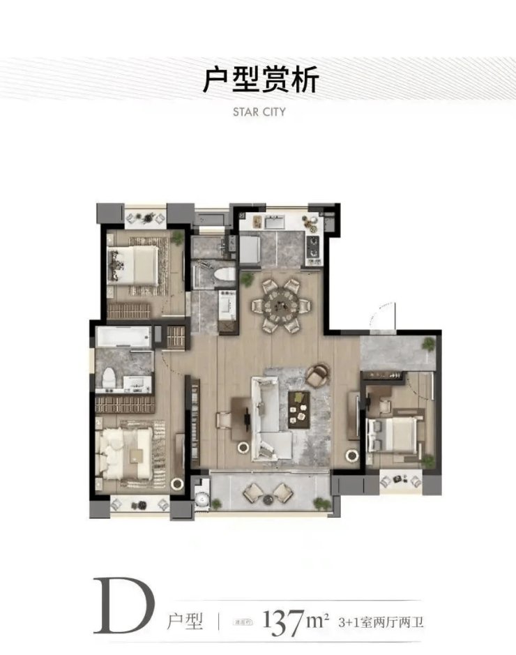 对于该户型来说,也是如今新房市场中更受欢迎的“主流户型”,预算有限又想要一步到位,选择该户型再合适不过了!即使三代同堂,居住于此也完全不限局促!