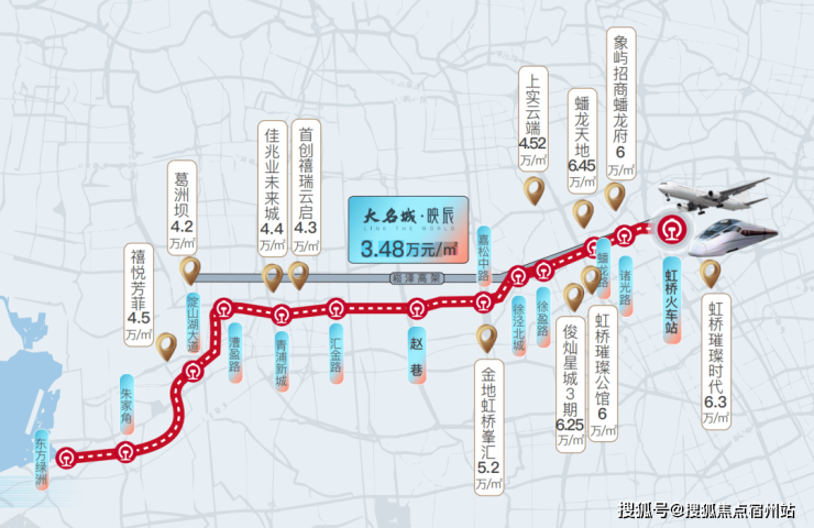 今年7月拍出的青浦西虹桥地块以溢价成交,最终房地联动价格高达62000元/平米。而大名城映辰备案价仅3.48万/㎡,堪称神仙级的“捡漏”神盘。