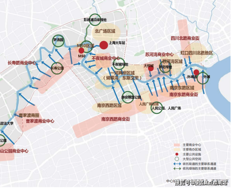 一江一河规划中,苏州河沿岸明确定位为“特大城市宜居生活的典型示范区”,上海2035规划中,苏河湾定位上海中央活动区!