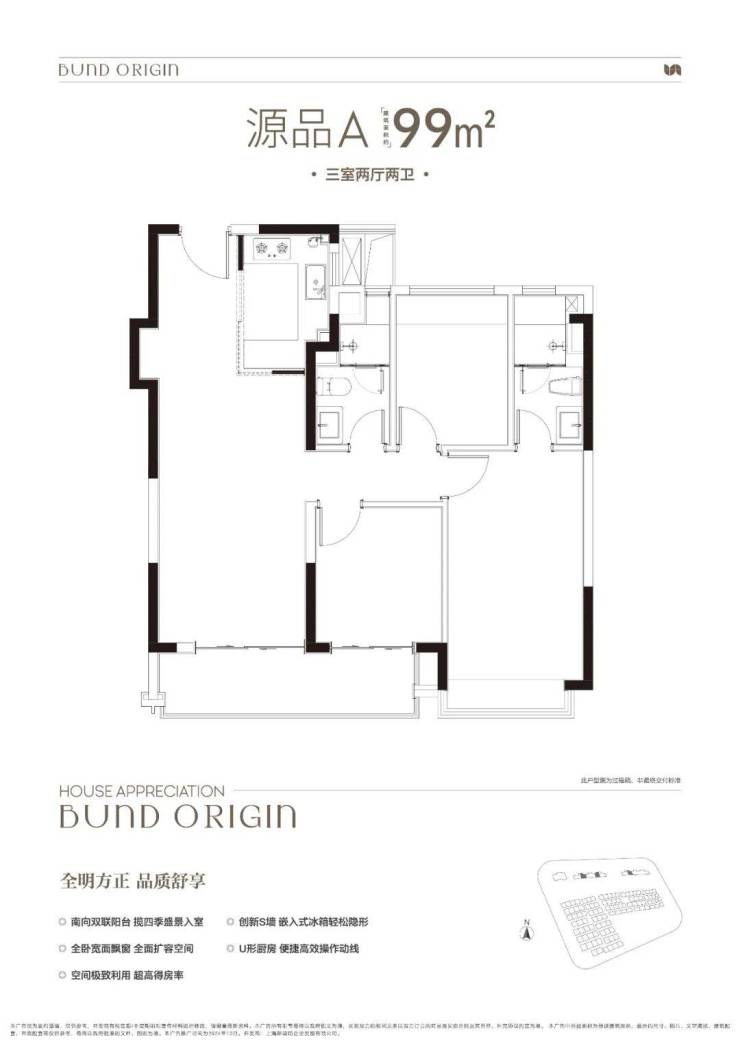 建面约99㎡3房2厅2卫▼