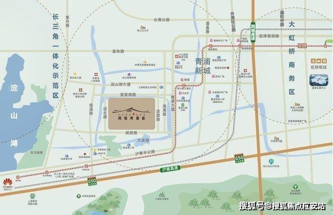 项目与17号线淀山湖大道站直线距离约2.5公里,