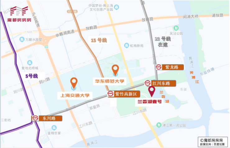 整个兰香湖社区位于上海2035规划的主城区里,距市中心大约20km,距15号线紫竹高新区站约1.7km,距在建的23号线江川东路不到1km,而且临近虹梅南过江隧道。