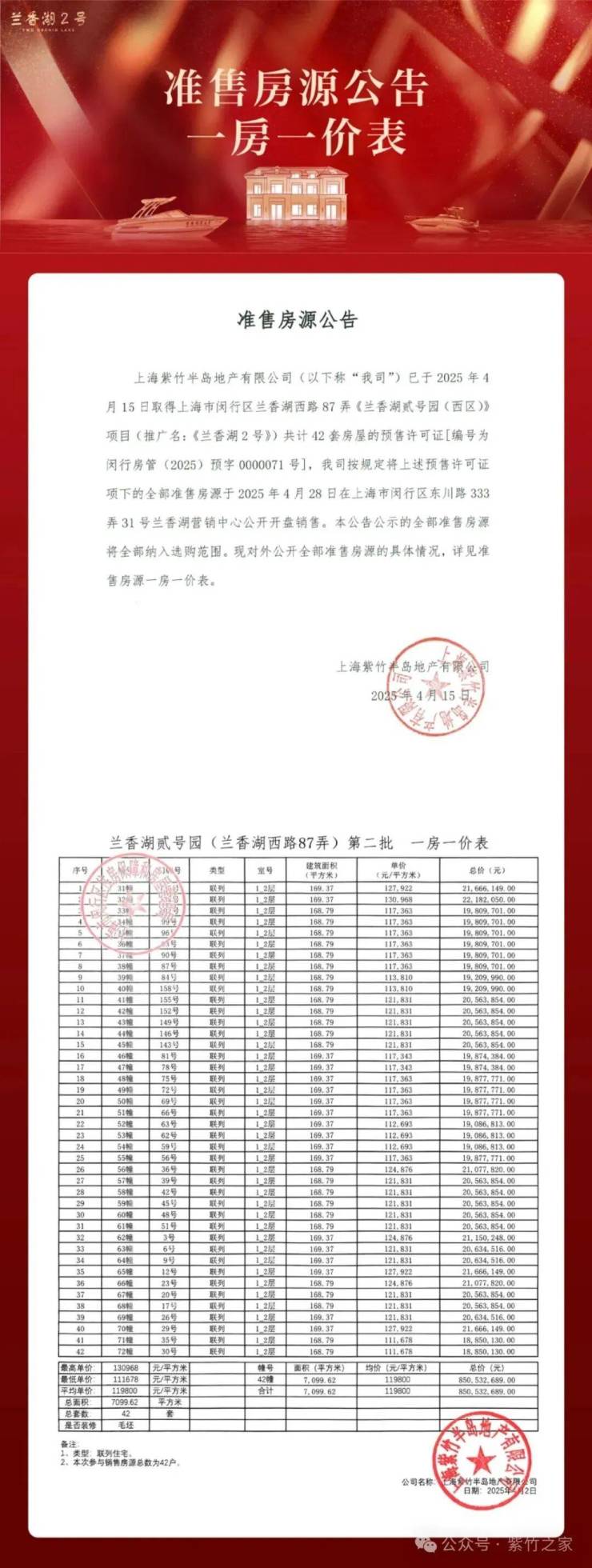 上期一房一价表如下: