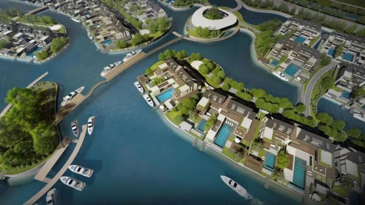 水系分布确保每家都能开游艇到兰香湖中心...太奢侈了!!