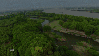 绿地景观沿黄浦江和兰香湖沿岸生长形成有序又自然的生态景观。