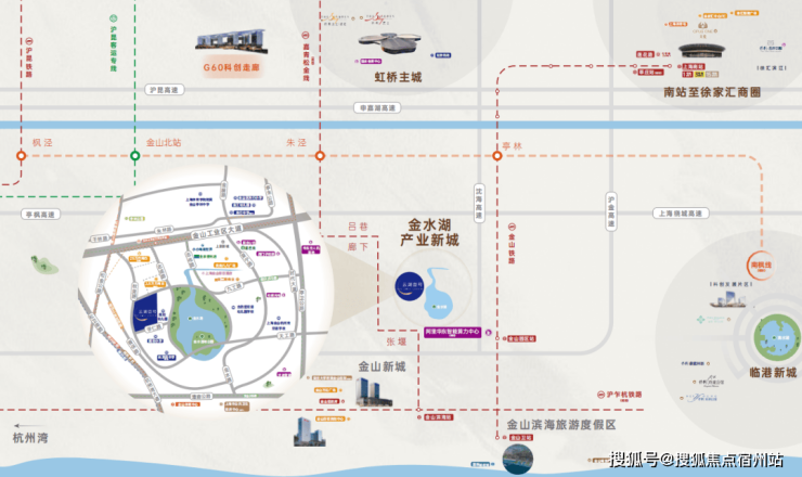 项目地处金山金水湖产业新城内,金水湖产业新城围绕“创业金山、宜居金山、和谐金山”的总体目标,以“绿色生态、低碳节能、智慧互联”为三大特色亮点,打造集居住生活、商务办公、休闲娱乐于一体的现代化智慧新城。