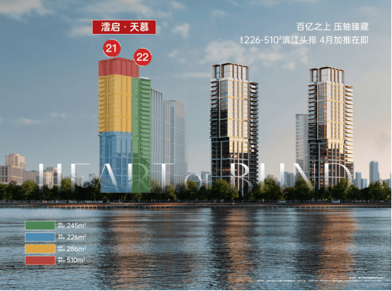 226-286㎡天幕大宅:从226㎡头排、245㎡全景,到286㎡天环幕——每一套都是“卖一套少一套”的旗舰作品。04地块沿江起步265㎡,4000w一线江景房从此即为“绝唱”!