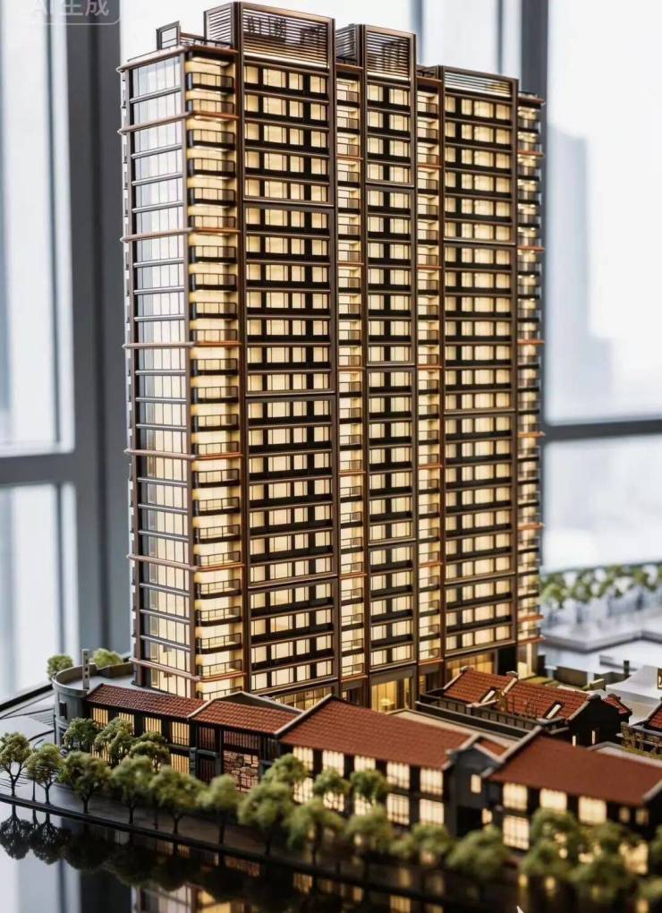 其中高层外立面昭示性十足!采用仿红砖陶板、优美柔和的设计元素、白色石材窗板以及古铜色金属线条设计,实现海派复古与现代建筑美学碰撞的艺术,颜值满分!