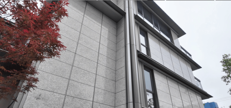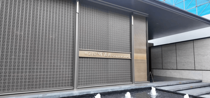 建筑立面也不存在效果图代替,大比例石材,搭配大面积玻璃与金属线条,现场看很有高级感。