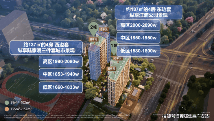 2、建面约137㎡4房也同样非常有性价比,在西边套有陆家嘴三件套景观、东边套有整面江浦公园的景观资源加持下,最低价还能做到1580w,景观楼层最好的一套总价也仅约2090w。