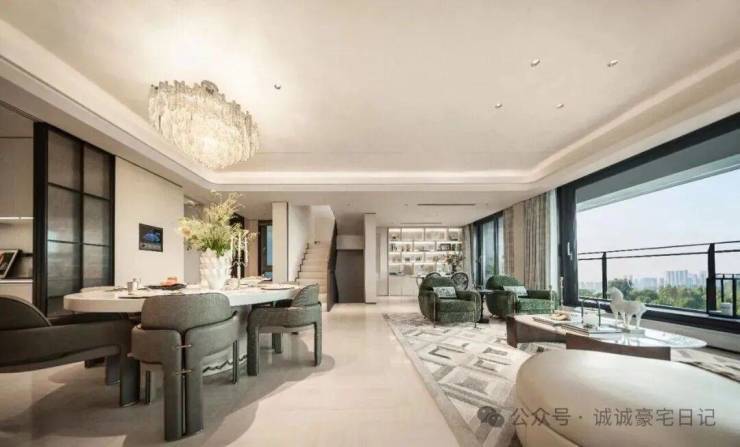 静谧的上叠不仅拥有无遮挡开阔视野,更能隔绝喧嚣,私密度拉满。露台的设计,给予生活更多的可能:可仰望星河、俯瞰园景,静享一方疗愈天地;与客餐厅无缝衔接,日常小聚、独处观景皆适配,让居家与自然相融。室内约3.3 米层高搭配LDKB 一体化宽厅,轩朗通透,搭配独立餐边柜的U 形厨房,进一步延伸社交场景。全屋甄选嘉格纳、汉斯格雅等国际大牌,搭配滨特尔全屋净水中央软水系统,以细节雕琢品质,成就城芯静谧舒适的终极墅居体验。