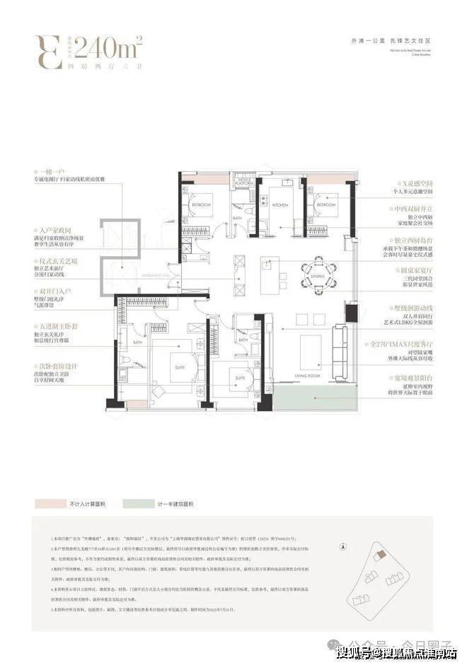 华润外滩瑞府预约热线☎:400-8080-420✅✅(官方预约看房热线)功能 MVP:作为上海内环 “大平层”产品中面积段最小的四房格局,约165㎡户型选择做三卧室朝南,这样让父母和孩子都能享受阳光和尺度!其中两间南向次卧以非承重墙为界,可随心打通为约6m开间的艺术天地,后期随着家庭新成员的加入,可以再重新北向房间相对独立静谧,恰到好处的距离感里藏着尊重。面对三口之家还是三代同堂的需求,这个户型都可以做到无需置换!