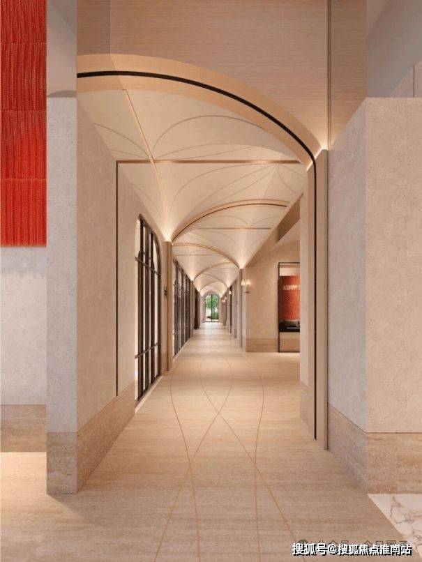 华润外滩瑞府预约热线☎:400-8080-420✅✅(官方预约看房热线)首开2号楼下的“温莎廊吧”: 复古砖红墙面勾勒出海派风情的典雅轮廓,叶脉纹大理石地面则如流水般铺展,让空间具有流动感。