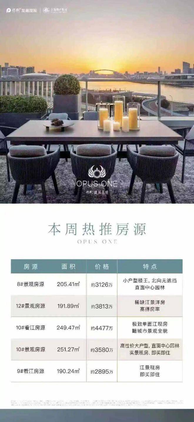 保利世博天悦售楼处电话:400-8787-740VIPLINE热线最新消息:【保利世博天悦】即将交付的实景准现房,主力面积是174㎡3房-195㎡4房,以及391㎡顶楼复式,总价约2700万起!另外特殊户型建面约500㎡江景大平层限时开放,总价约7500万~1.4亿!一层一户,双S湾270°全景视野,35米江景面宽,样板间、实体楼预约可参观!