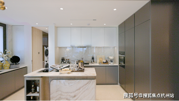 厨房U型设计,自带岛台空间,独立家政间位于在厨房一侧,洗衣、储物全收纳,让家务动线与生活动线完美分离,不占用核心生活区空间。