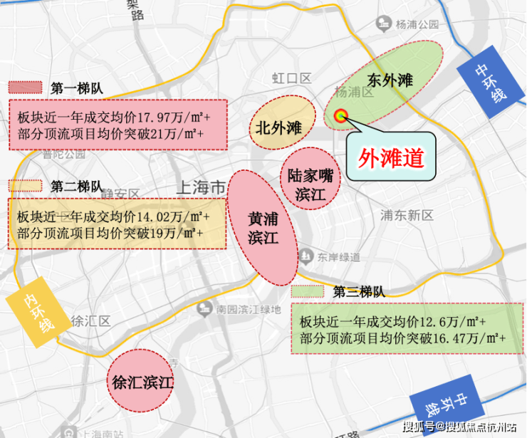 对比北外滩、陆家嘴、徐汇滨江20万+价格。外滩道预估约14万+呈现惊喜。与周边翠湖滨江(21万/㎡)、翡丽甲第(15.5万/㎡)等相比。