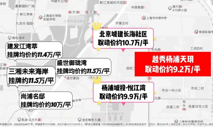在市区,购房的门槛已经变得异常高昂。观察上海中环周边的热门区域,房价普遍攀升至每平方米10万至13万之间。例如,大宁的新房均价已达到10.5万元,真如的新房均价约为10.78万元;徐汇滨江的房价约为14.2万元;前滩的房价约为13.2万元;北蔡的房价也已达到每平方米约11万元。对于那些渴望在中环附近置业的朋友们来说,杨浦区已成为少数几个性价比相对较高的区域之一。特别是北中环沿线附近的越秀·杨浦天玥,其均价为每平方米9.2万元,尤为引人注目。