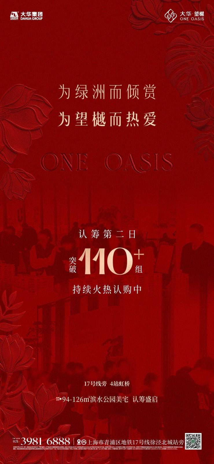 据悉,自大华·望樾项目启动认筹以来,现场每天都呈现人潮涌动的热烈景象。短短数日,认购客户数量便突破110组,认筹比例迅速超过100%,上海楼市再度上演了一场备受瞩目的“现象级”火爆认购盛况。