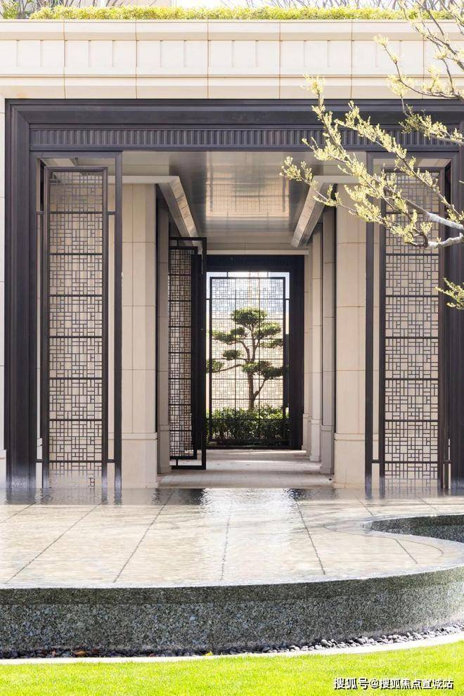 宝华紫薇之星售楼处电话:400-8787-740☑️☑️比如在这里,以简洁的门框为前景,撷取园中的水体、立柱,将树木作为主体突出,整个画面构图完整,具有非常突出的艺术效果。