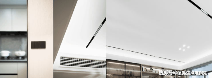 不仅标配了中央空调+新风系统,而且还设计了全屋墙布、不锈钢踢脚线、磁吸轨道灯带设计等等…… 从装修大件,到细微之处,无一不体现了这个精工国企对于这个社区的匠心。