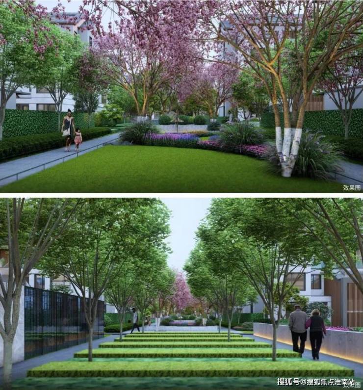 同时,采用高层-洋房-叠院分区景观打造,合理规划动线,丰富自然场景,充分保障每一位居者的日常静谧。
