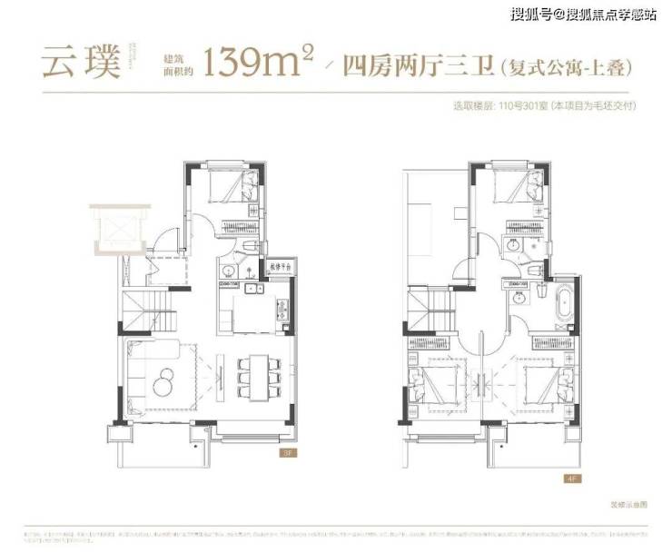 项目叠墅户型有建面约142㎡下叠,建面约139㎡上叠。
