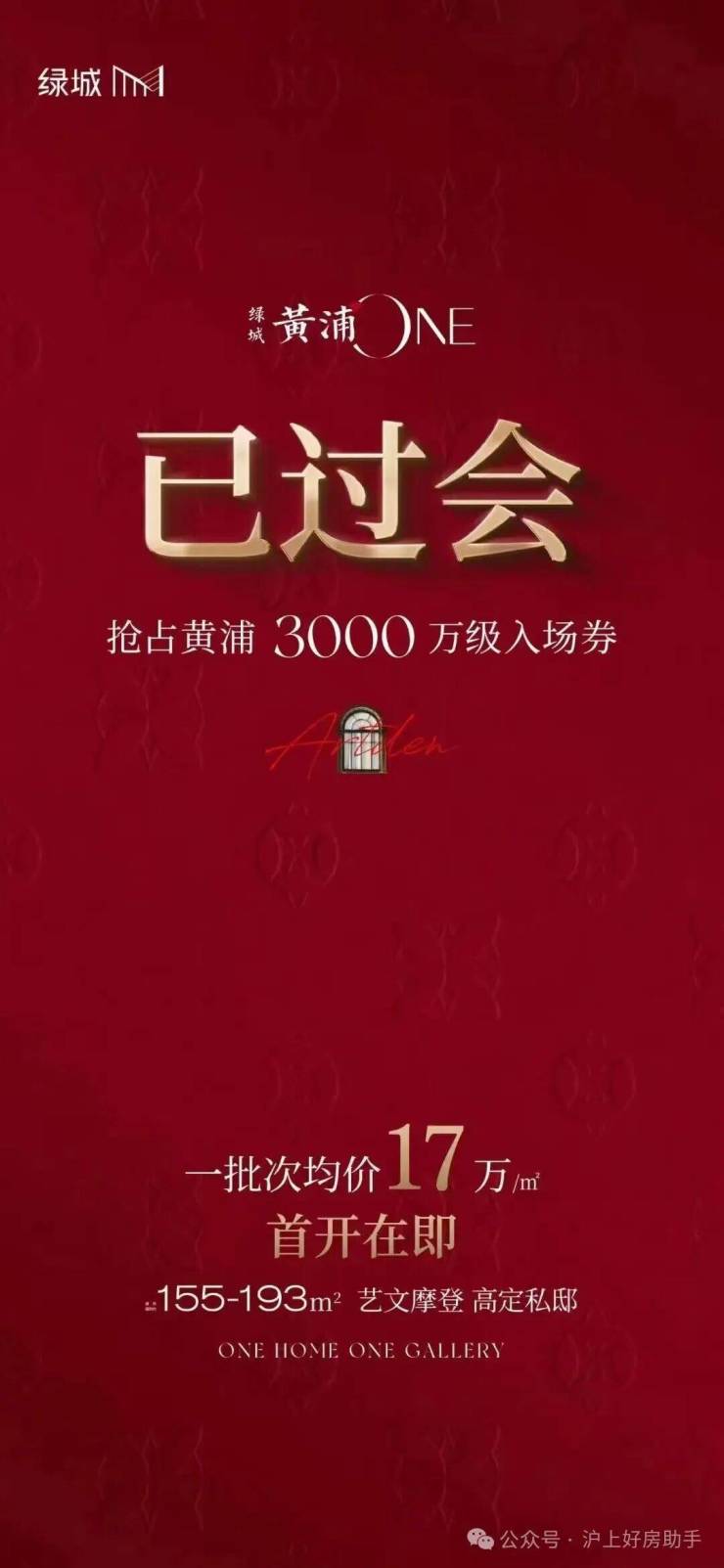 据悉【绿城黄浦ONE】将推建面约155-193㎡3-4房(高层),均价17万+/㎡,总价2300万起,仅112席,不容错过!项目接待中心持续开放中,样板间已开放!
