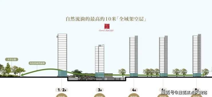 公园嵌入式浮岛社区:全域约 6.3米 -10 米架空设计,让公园绿意与山水诗韵自然邀约入室,打造公园嵌入式浮岛社区,呈现无界的社区风景。规划缤纷童趣、社区会客厅等多元架空层空间,于此开启生活的温暖缤纷。