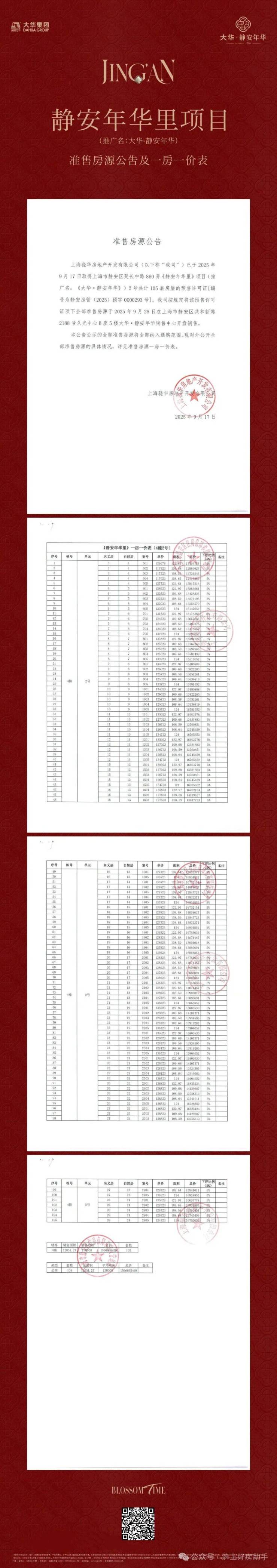 大华静安年华一房一价表: