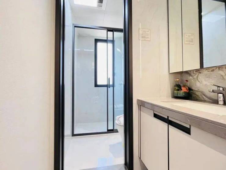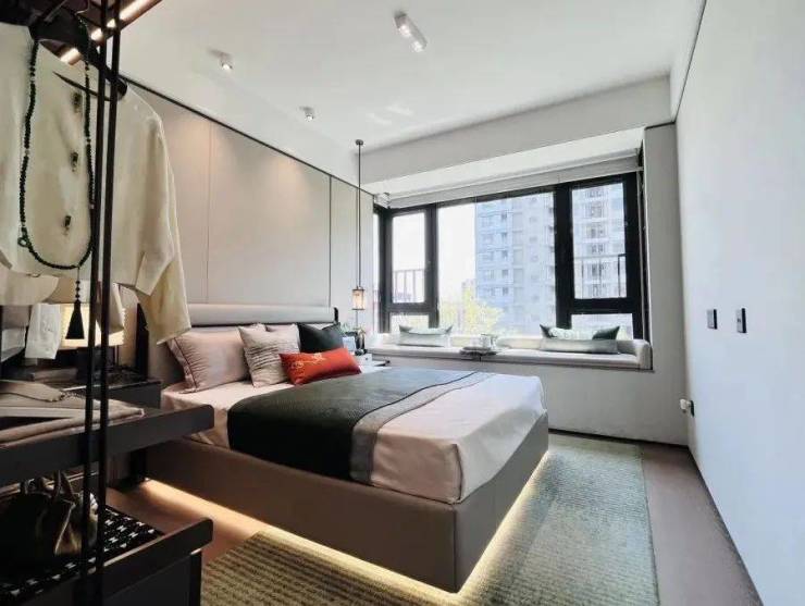 两间卧室朝南,均带有飘窗,主卧自带独立卫浴,小户型也可以拥有酒店套房般的体验。北向房间设计双飘窗,这也就意味着拥有双向景观,给了生活更多一种的可能。