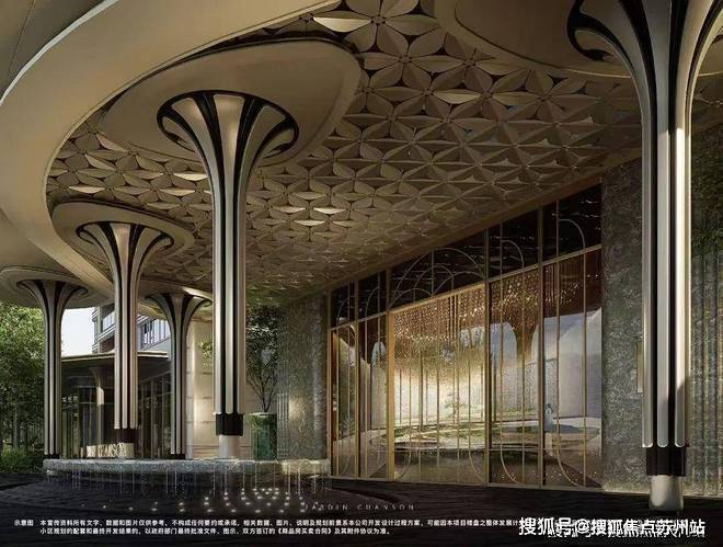 进门之后,恍若走进一幅立体绽放的画卷。地面采用了石材拼花,纹理如行云流水般舒展,在光影交错间勾勒出 低调的奢华。
