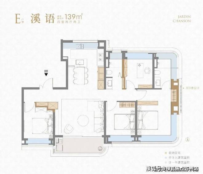 项目建面约139㎡4房则是集大成的终极改善户型。