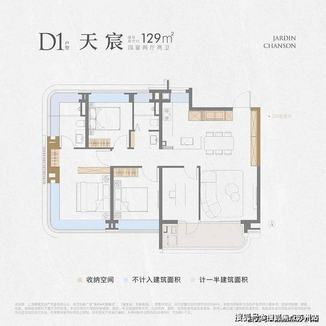 项目建面约128㎡4房户型延续了前作3S墙的设计,保证了收纳空间的丰富性。