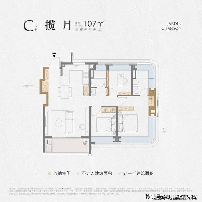 不夸张的讲,这个 建面约107㎡刷新了我对百平三房的新认知,据悉该户型或将申请专利