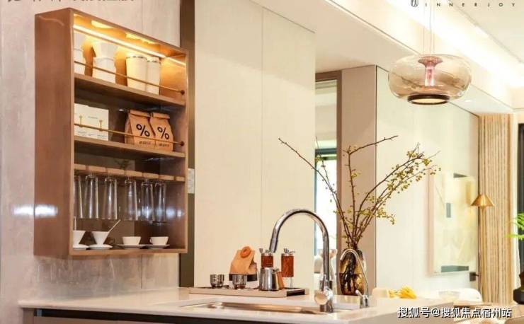 半开放式厨房,打破了传统的全封闭设计,与餐厅无界相通,面朝客厅与阳台,形成S型流畅生活动线,也打破了居家生活的空间隔阂,无形之间,增强家人之间在日常时刻的交流与互动。