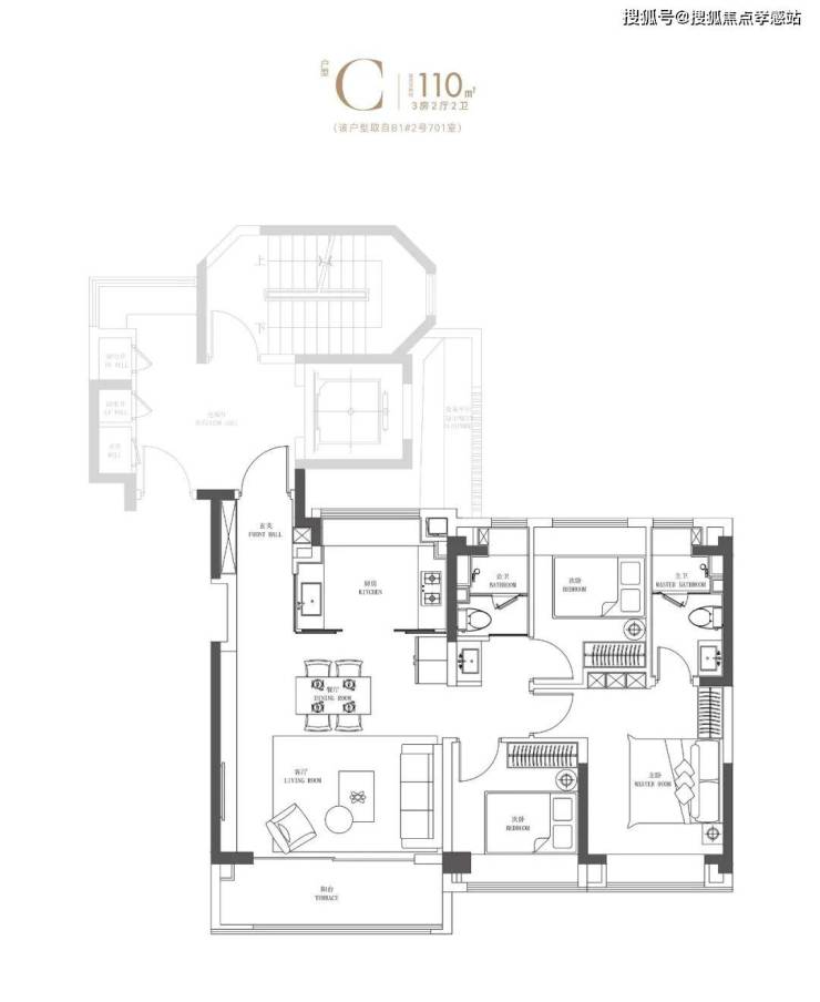 建面约108㎡3房(小高)实用且更有温度的“家庭生活中心”
