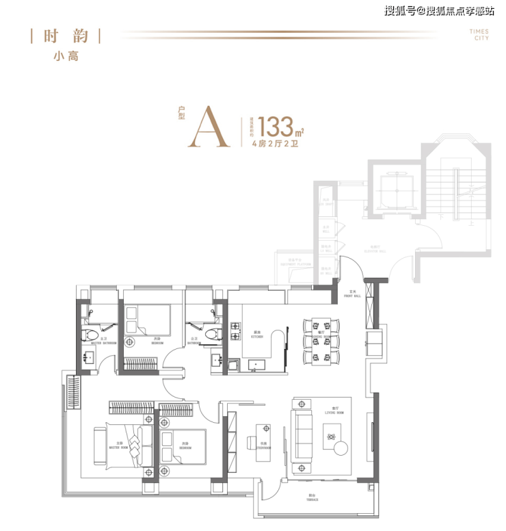 建面约130㎡-170 ㎡ 叠墅产品南北入户、专属电梯厅、超级横厅、超强收纳