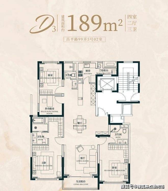 建面约183㎡4房2厅2卫户型:昌平云岸售楼处电话:400-8855-420📲(官方售楼处电话)