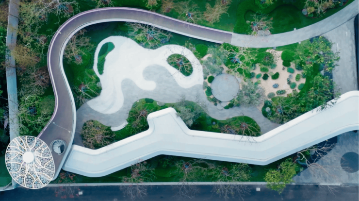 外部:约6000㎡量子艺术公园。一街之隔,已盛装开放。