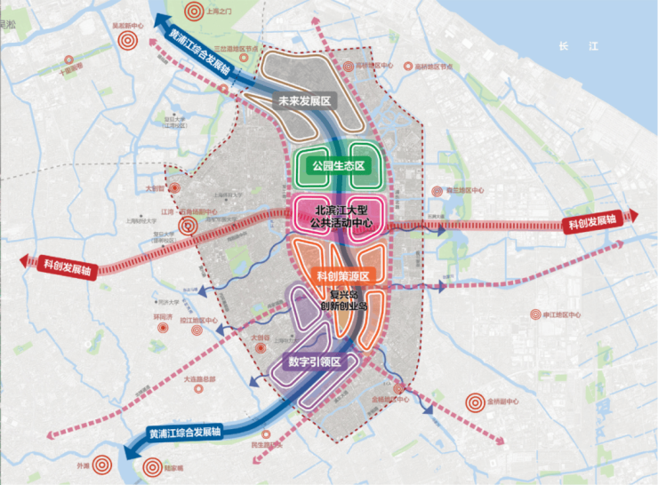 复兴岛也正式被定义为“国际创新创业岛”,围绕“⼀核·两轴·四区”来建设发展,岛上将形成户外文体、文娱、研发孵化、创新创业等四个片区,总体打造未来城市实验区、创新创业和人才集聚区、空间智能创新先行区,形成 “科创+艺术+生态” 的复合功能。